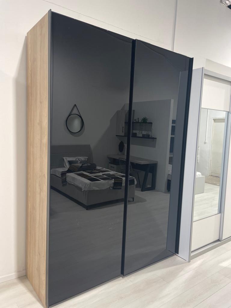 ארון דלתות הזזה שחור מבריק בשילוב עץ