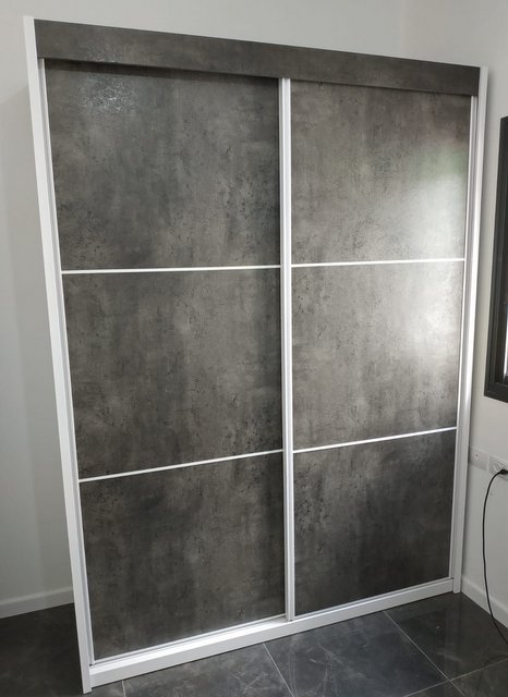 ארון הזזה דלתות בטקסטורת בטון אפור.