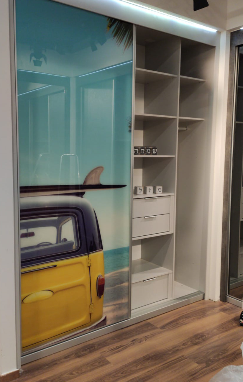 ארון הזזה דלתות זכוכית עם הדפסה של תמונה אישית.