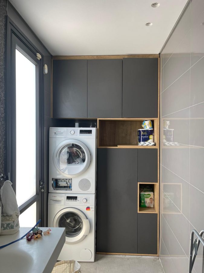 ארון שחור עם ידיות פתיחה בעיצוב ייחודי