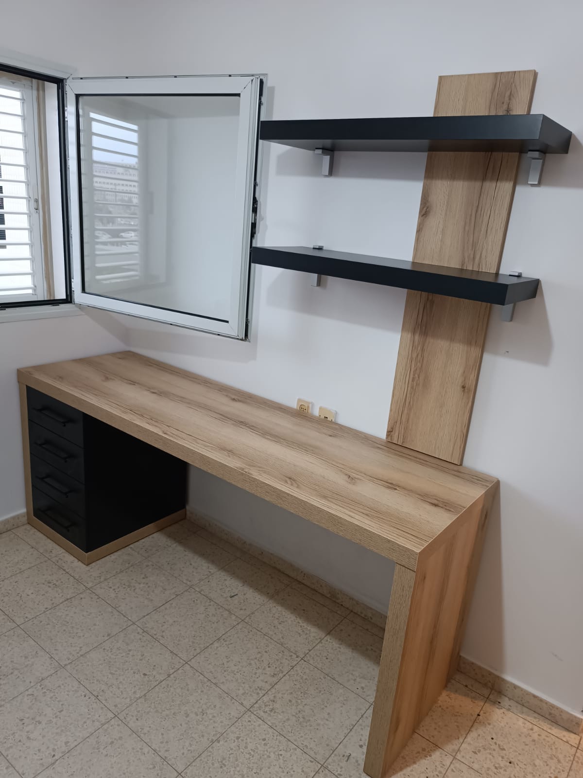 שולחן עבודה בשילוב מדפים בהתאמה אישית